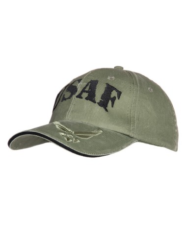 Cappellino da baseball con scritta nera USAF (Aeronautica Militare Americana) ricamata frontalmente in rilievo.