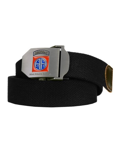 Cintura militare con bellissima fibbia in metallo con in rilievo lo stemma colorato della Airborne 82 AA.
