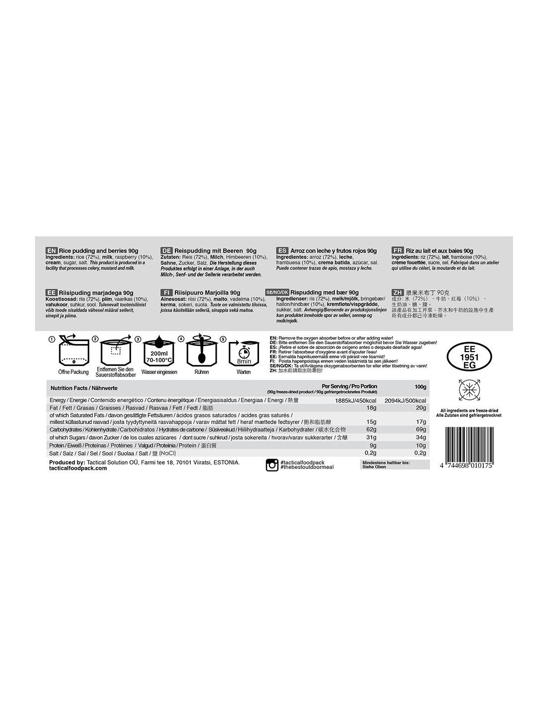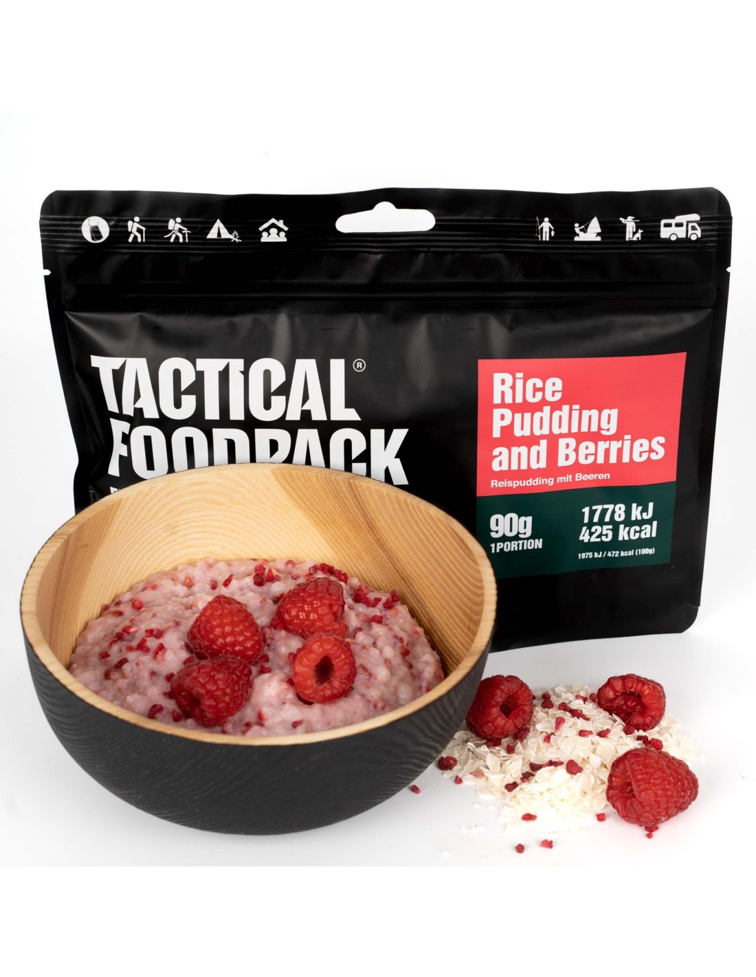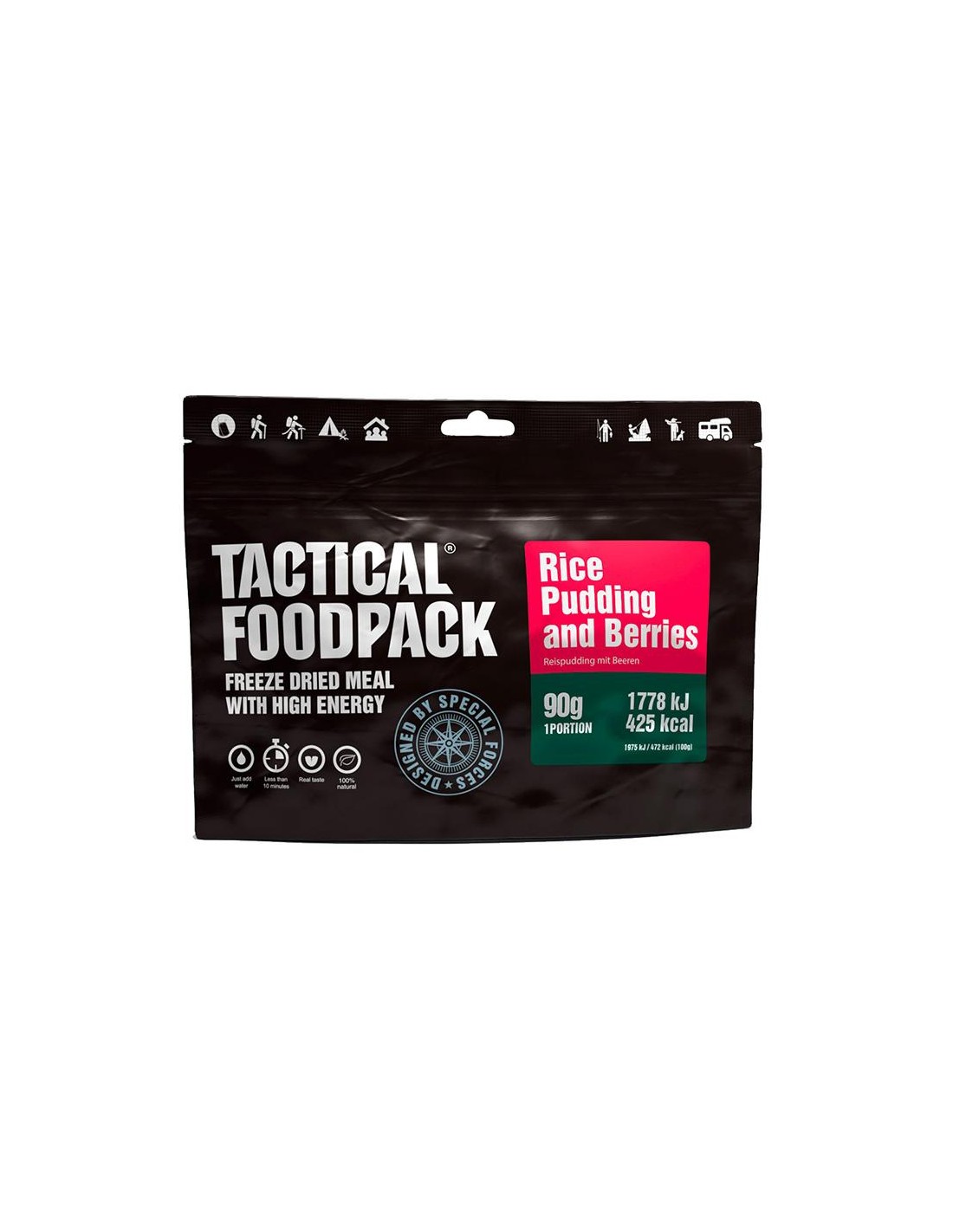 Razione militare ad alto contenuto energetico e peso estremamente ridotto realizzata dalla Tactical Foodpack secondo gli standard di militari ed esperti di escursionismo.