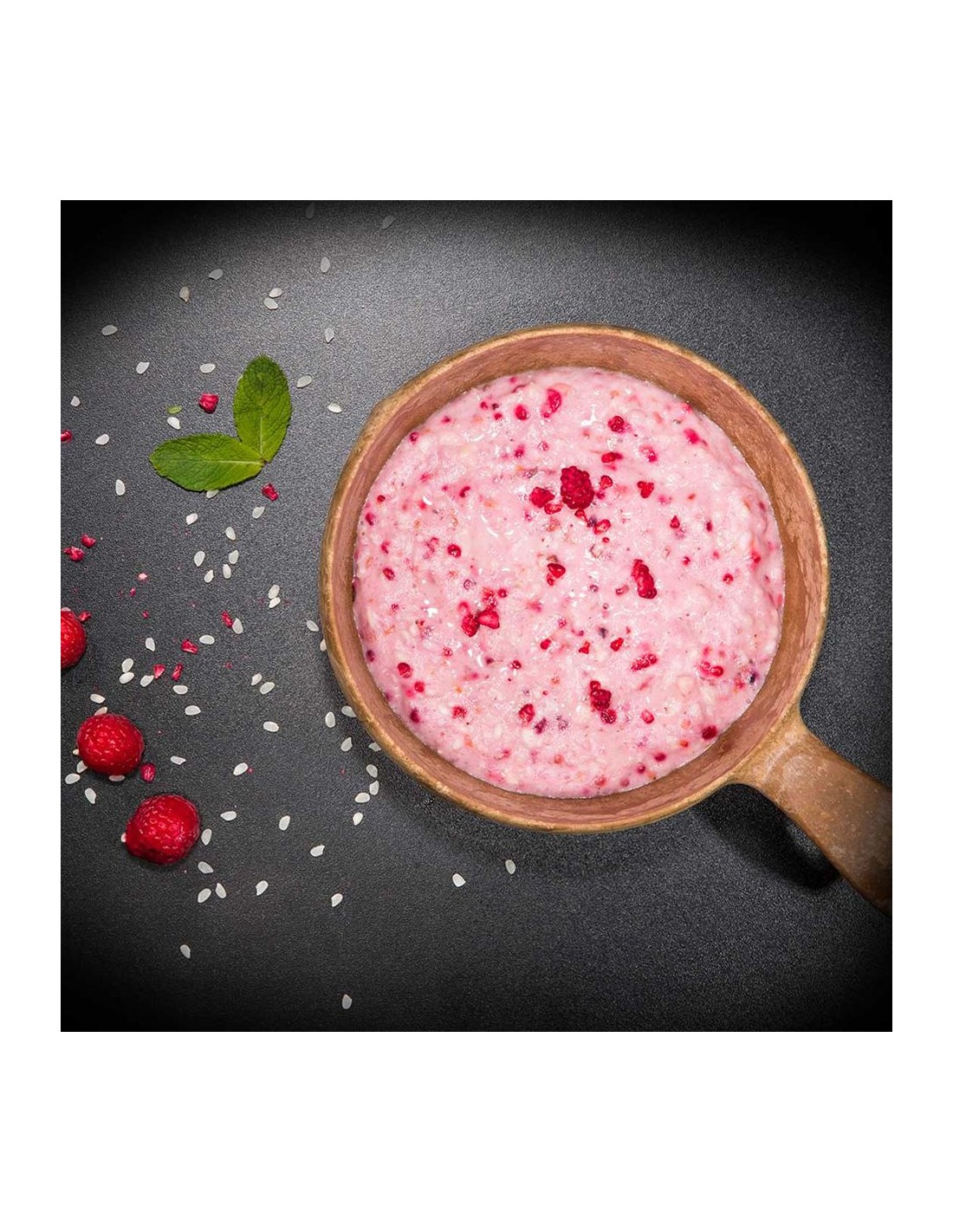 Una deliziosa colazione con il 10% di lamponi. Budino di riso dolce e ricco di energia, da la forza per iniziare la giornata al meglio.